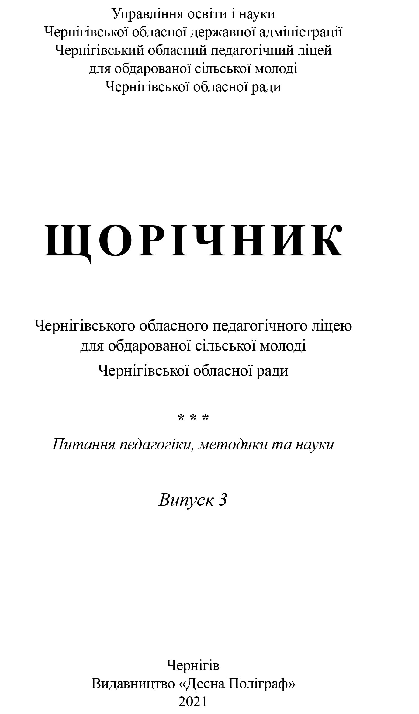 ЩОРІЧНИК Чернігівського обласного педагогічного ліцею для обдарованої сільської молоді Чернігівської обласної ради 2021 р.