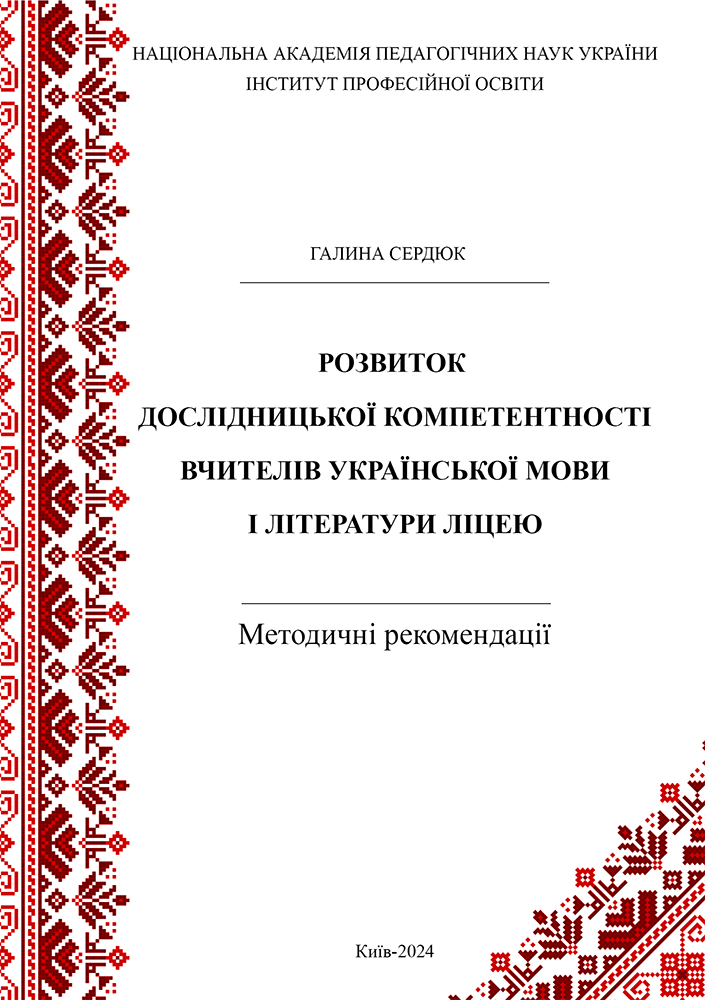 РОЗВИТОК ДОСЛІДНИЦЬКОЇ КОМПЕТЕНТНОСТІ ВЧИТЕЛІВ УКРАЇНСЬКОЇ МОВИ І ЛІТЕРАТУРИ ЛІЦЕЮ. Методичні рекомендації