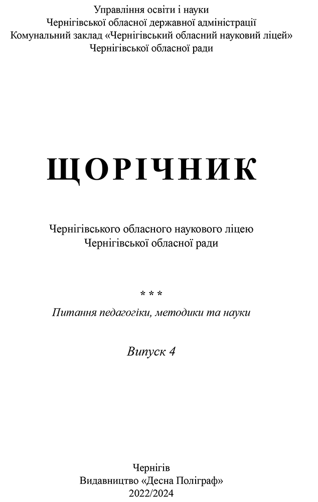 ЩОРІЧНИК Чернігівського обласного наукового ліцею Чернігівської обласної ради 2022-2024 р.р.