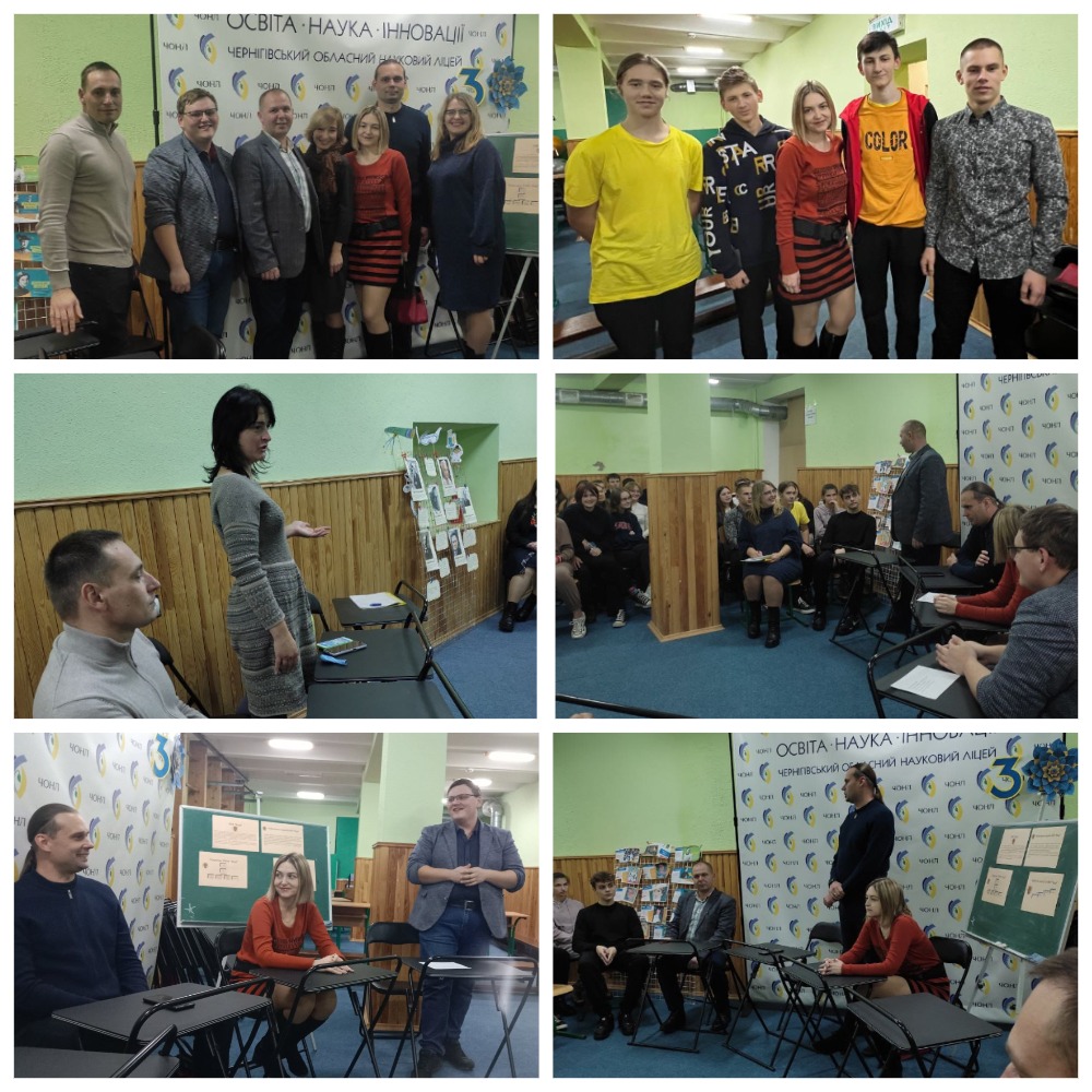 Модератор заходу Галина ГРИЩЕНКО, віцедиректорка ліцею з наукової роботи, організувала зустріч учнів та учениць 10-х класів з випускниками і випускницям ліцею, що мають значні досягнення у науковій та науково-технічній діяльності.