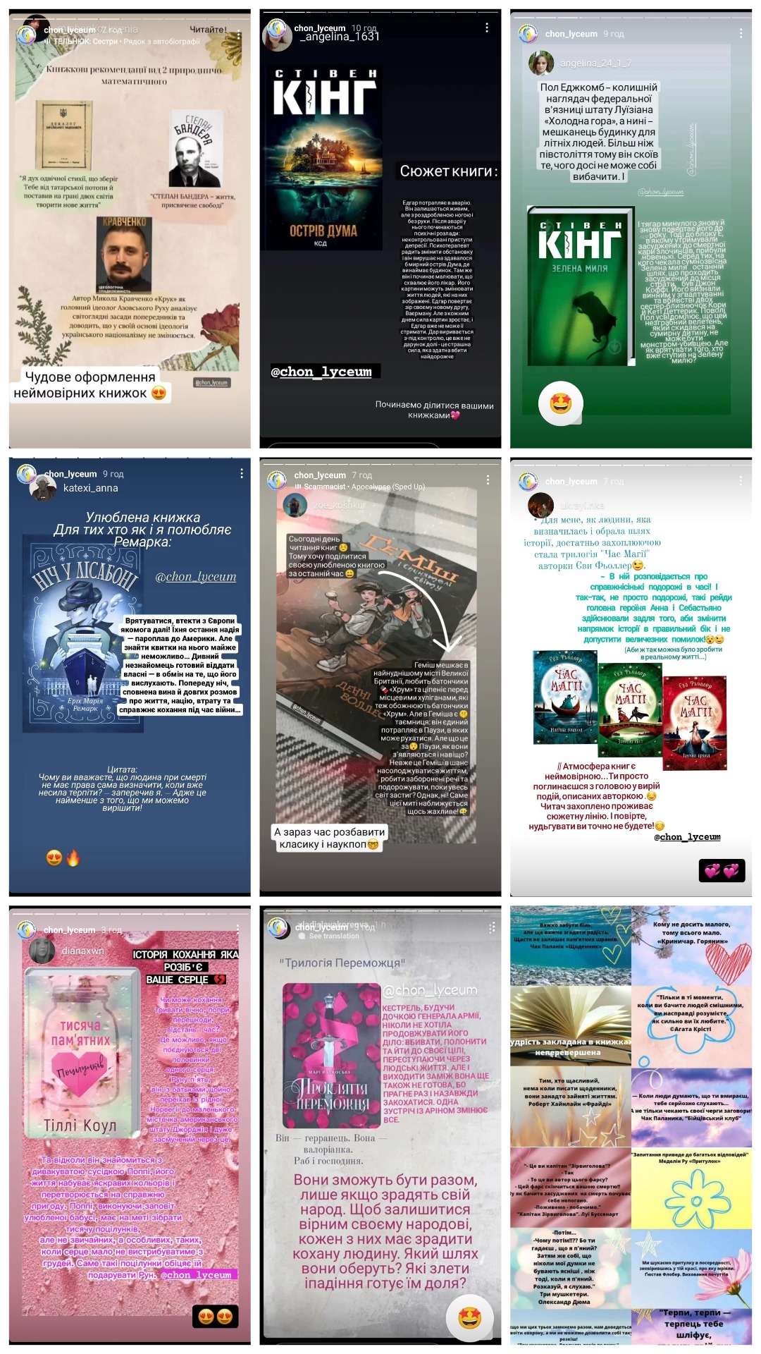 Парламент на сторінці @chon_lyceum запустили челендж уривків з улюблених книг. А першокурсники й першокурсниці природничо-математичного додали постери з бібліопорадами та кращими цитатами. А в бібліотеці стартувала виставка новинок фонду. Хороша вийшла "Ліцейна читанка".