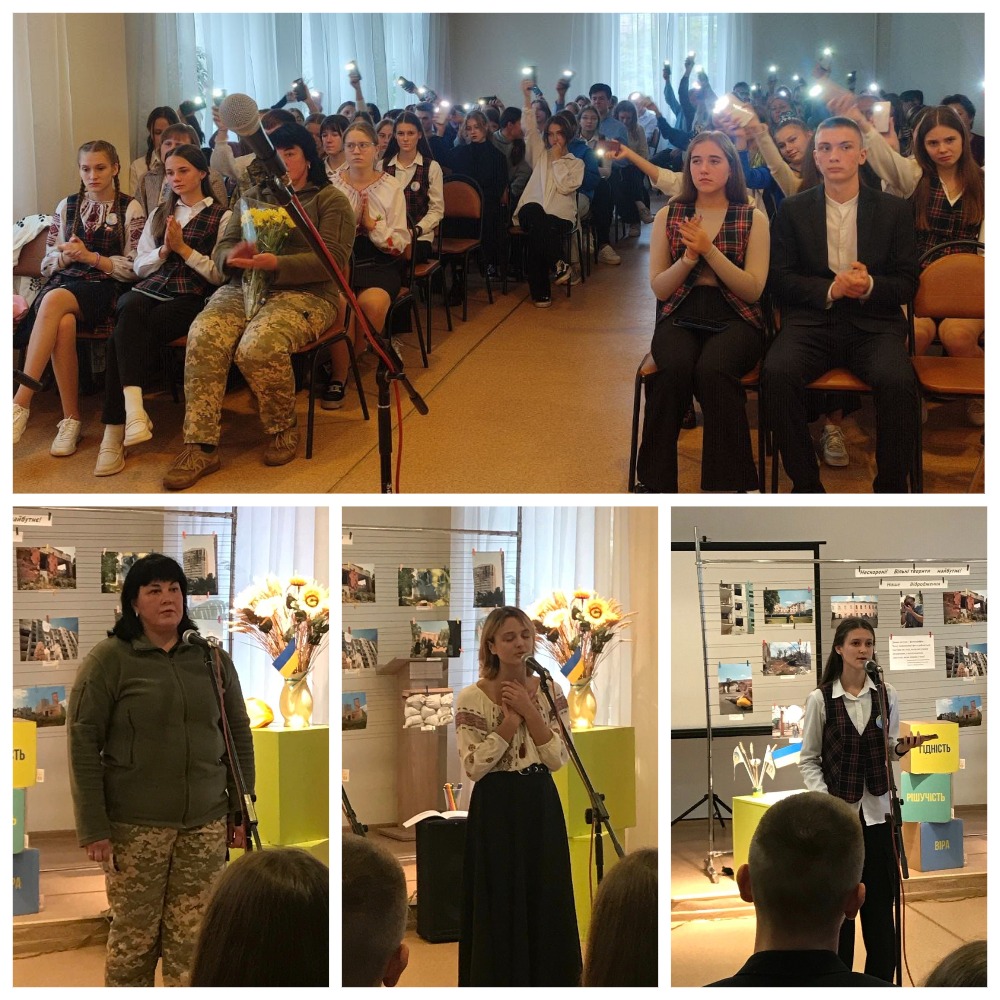 Хоча цього року підступний ворог завадив нам відсвяткувати ці дати так, як хотілося б, але наперекір усім тривогам і труднощам учнівство другого курсу разом з педагогами зустрілися, щоб вшанувати наших захисників. До заходу долучилася захисниця України, мама учениці ліцею Олійник Світлана Петрівна - капітан, начальник медичної служби медичного пункту військової частини. Під час свого виступу вона зауважила, що захист держави - справа її громадян, і, який би життєвий шлях не обрали учні й учениці, треба це пам'ятати й боронити свою державу.