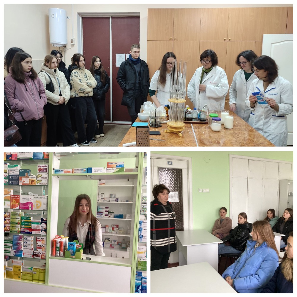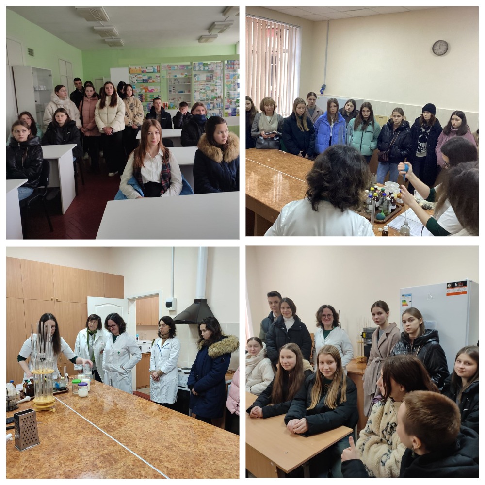Ірина Курмакова, завідувачка кафедри хімії, та Олена Бондар, викладачка кафедри ознайомили присутніх з особливостями підготовки студентів за спеціальністю "Фармація". Учнівство завітали в аудиторію, що має назву "Аптека-студія", де мали змогу відчути себе у ролі провізора.