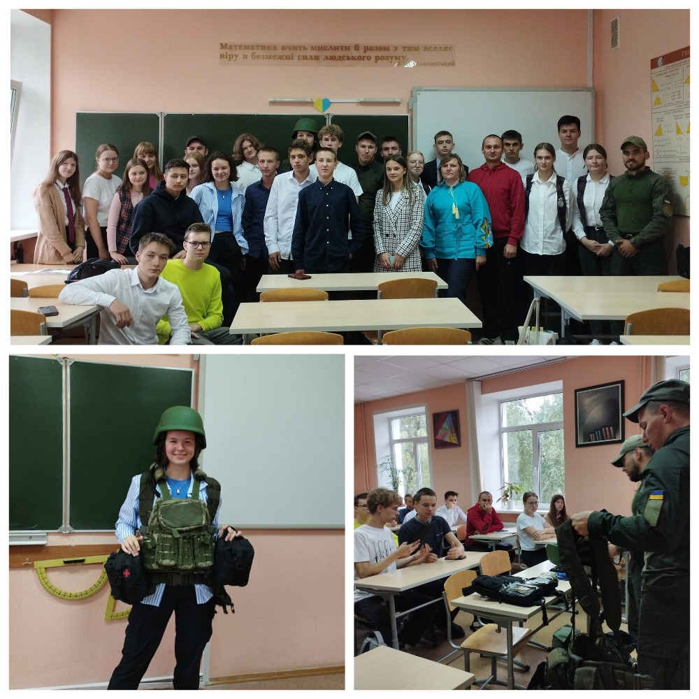 Зустріч розпочалася о 9:00 з традиційної хвилини мовчання та Гімну України. Військовослужбовці, які з перших хвилин бойових дій на Чернігівщині стали на захист міста, розповіли про свою діяльність: про порядок проходження військової служби за контрактом в лавах НГУ, соціальний захист та фінансове забезпечення. Серед працівників був інструктор з медицини, який зосередив увагу на принципах першої допомоги постраждалому, зокрема, на правильному накладанні турнікету та бандажу на рану. Учні й учениці мали змогу приміряти військову екіпіровку гвардійців та потренуватися у накладанні турнікету.