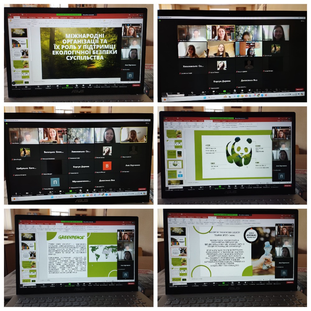 Ця тема є надзвичайно важливою, особливо у світлі реалізації Європейського зеленого курсу й прагненні України до впровадження його в усі сфери життя. Учасники й учасниці зустрічі обговорили реалізацію Цілей Сталого Розвитку ООН, що включають в себе проблеми підтримки екосистем, водоймищ, забруднення атмосферного повітря. А також познайомилися з основними міжнародними екологічними організаціями: Міжнародний Союз охорони природи, Greenpeace, Global Nest, World Meteorological Organization та інші організації, що вже роками займаються питаннями підтримки екологічної безпеки у світі.