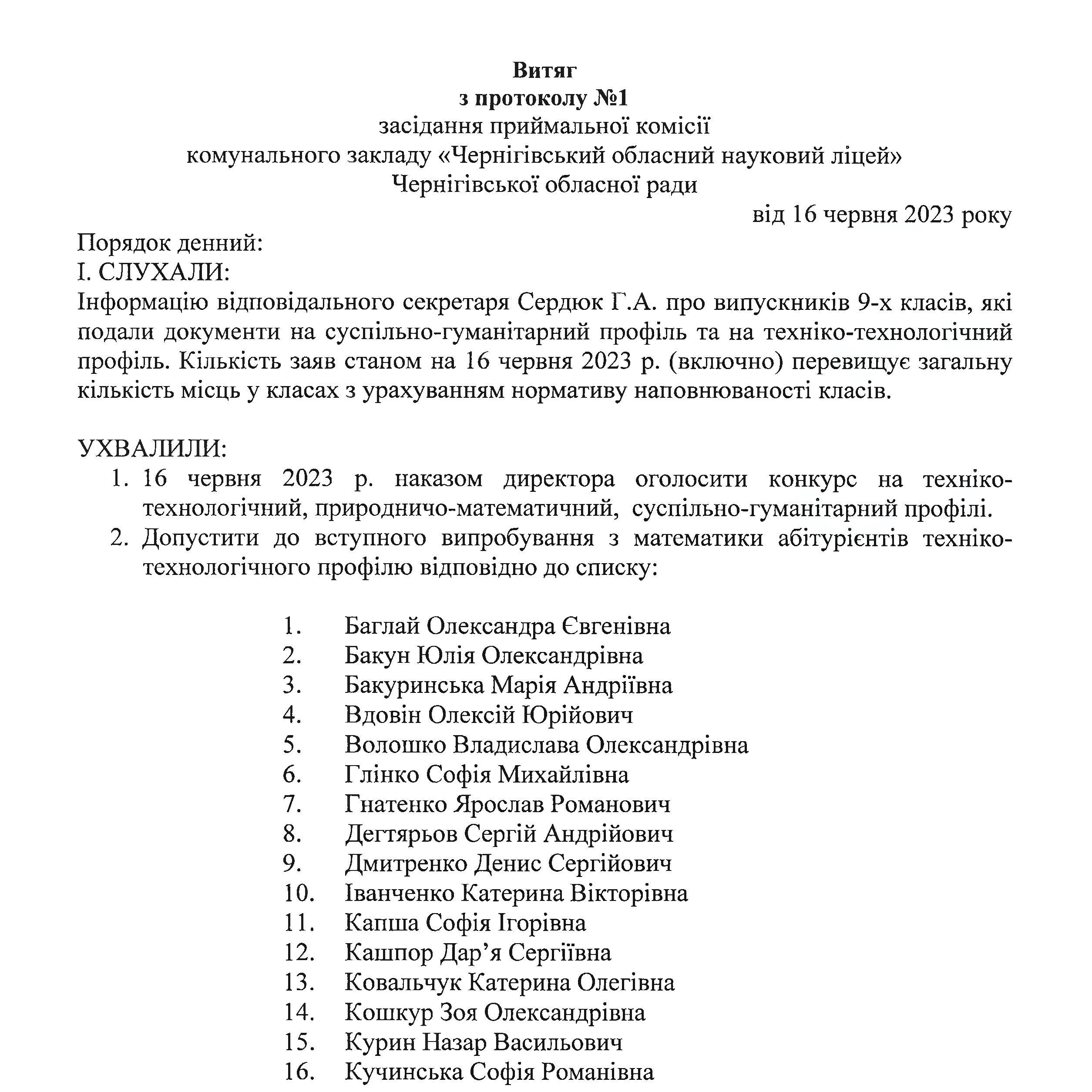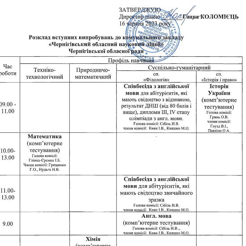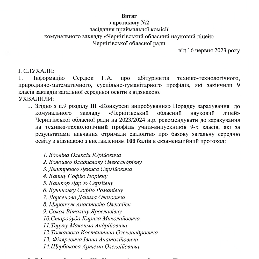 "Чернігівський обласний науковий ліцей" Чернігівської обласної ради у 2023 р.