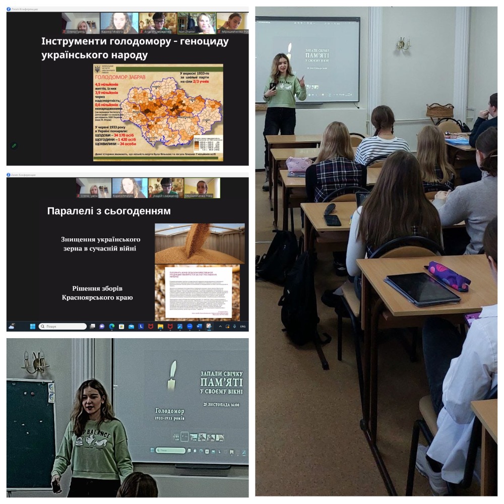 Ліцеїсти й ліцеїстки 11 класу дослідили спільні риси між голодоморами минулого століття та окупаційною політикою росії під час російсько-української війни 2013-2023 років. Викрадення українського зерна, знищення підприємств, портів, мінування полів і підпали їх - це ознаки геноциду українського народу, схожого з подіями ХХ століття.